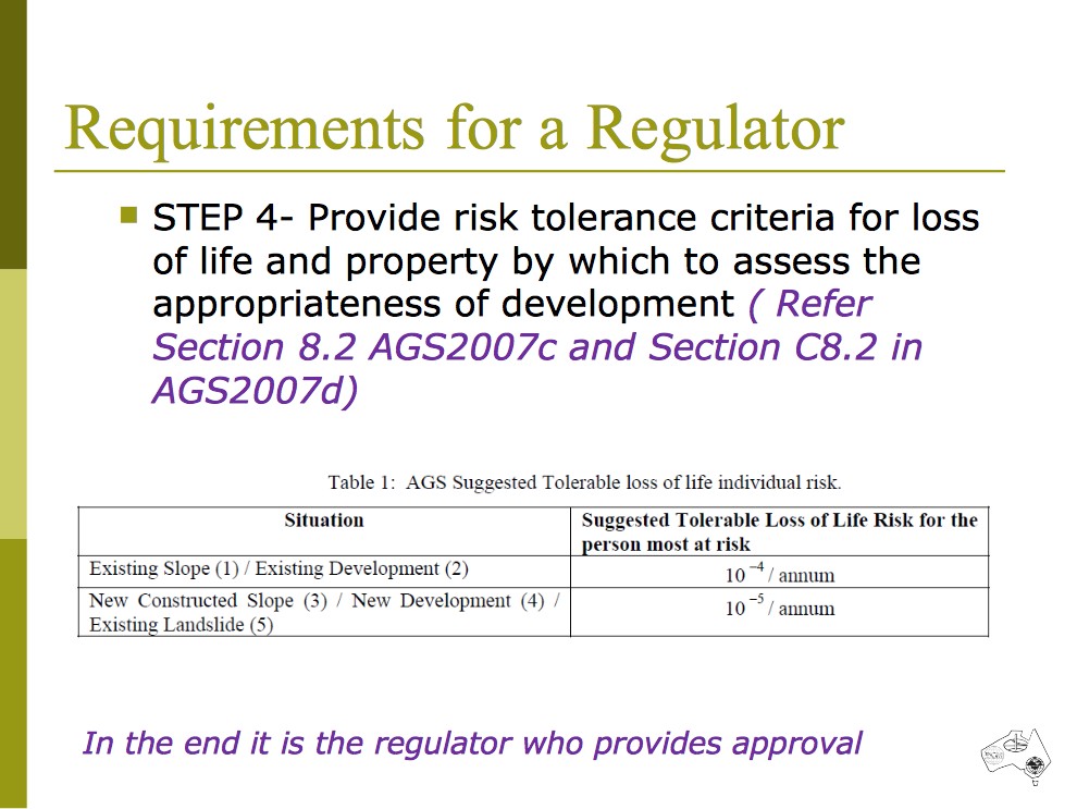 This module of the website is aimed at the Regulator who have the responsibility for setting risk criteria, administering planning controls and approving development proposals under the requirements of specific planning controls or a policy.