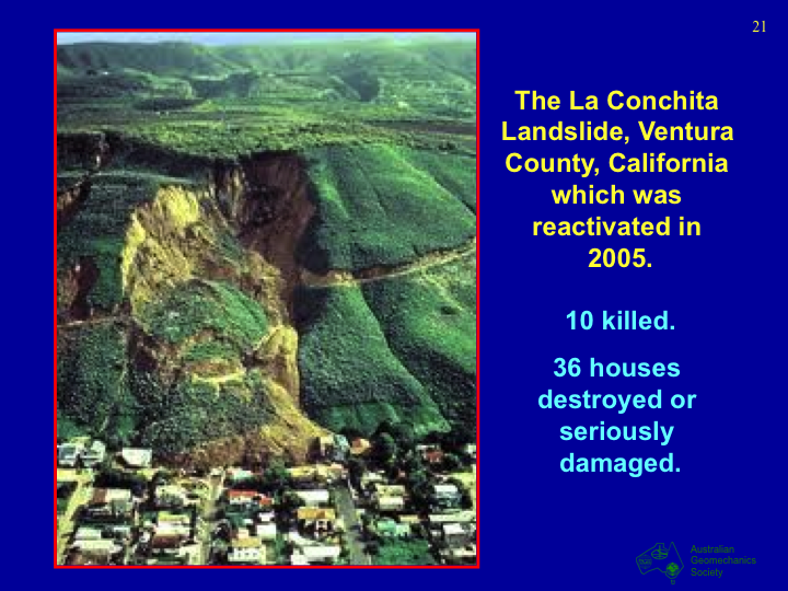 Reproduced from “Natural Hazards in Australia. Identifying Risks Analysis Requirements. Miriam H. Middlemann (Editor) 2007. Geoscience Australia , Canberra. Chapter 8 Landslides