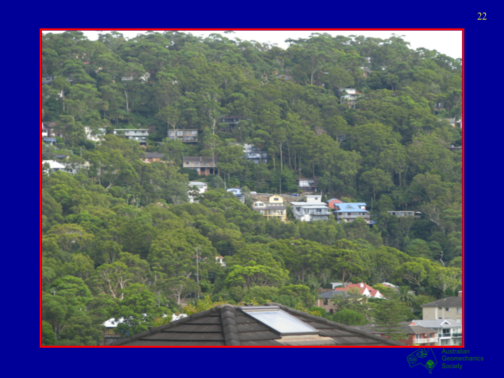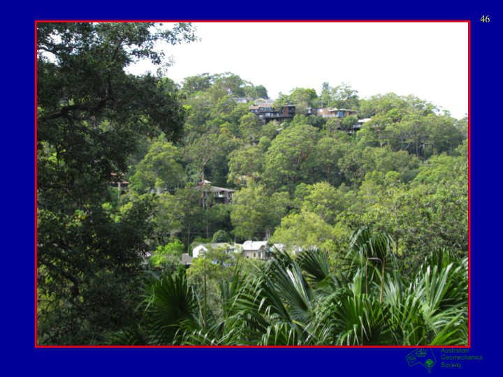 Across Australia, there are many examples of houses and subdivisions built on existing landslide sites or on slopes that are susceptible to failure. While most of these landslide sites may be dormant, some can be reactivated with changes in pore water pressures and/or disturbance through human activities such as property development.