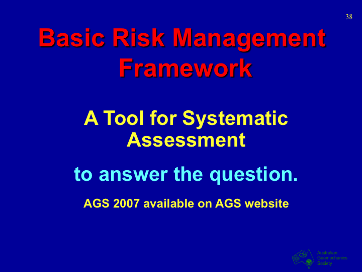 AGS suggests that for most development in existing urban area criteria based on Tolerable Risks levels are applicable because of the trade-off between the risks, the benefits of development and the cost of risk mitigation.