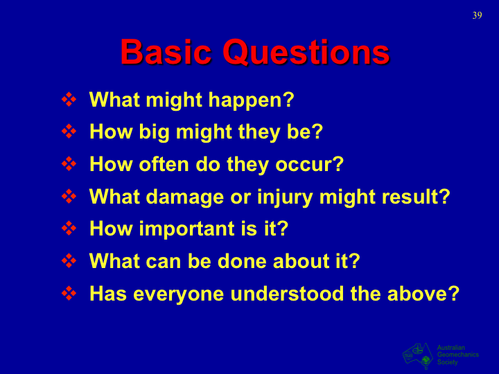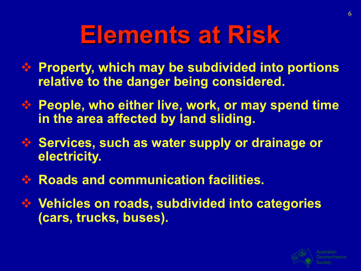 Terminology used in papers discussing Risk in relation to landslides has evolved and changed over the years. When referring to published papers, the reader has to be very careful as to the definitions adopted for the various terms. Unfortunately many papers do not define the terms used and therefore it is easy to confuse the terminology with that now adopted as defined in AGS 2007c.